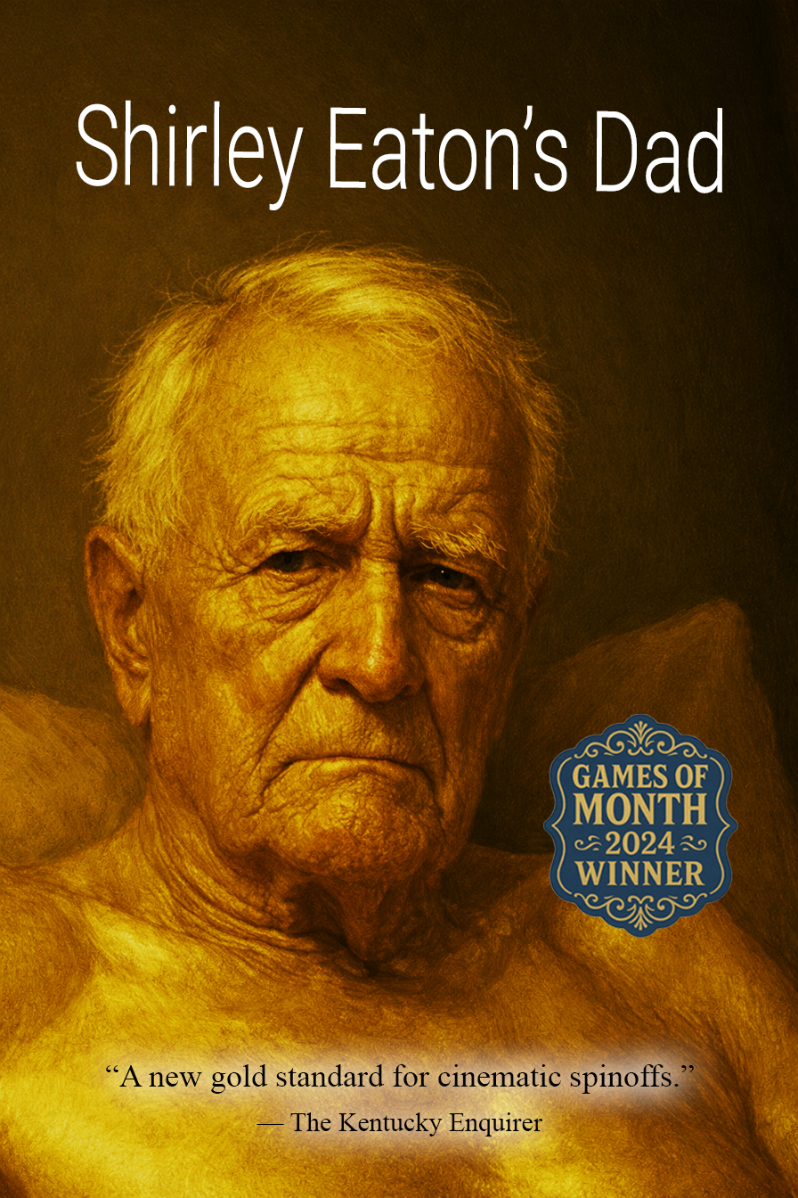 Shirley Eaton's Dad is a hilariously desperate party game about the lying, gold-chasing father of the actress made famous by Goldfinger. In this warped spin on “Two Truths and a Lie” — every story is a lie, and the bigger the better. Players take turns spinning three outrageous tales of fame, fortune, and maybe fathering a Bond girl, while everyone else tries to agree on which claim is the most delusional. Was he Sean Connery’s stunt double? Did he invent glitter? Did he really live in Fort Knox? Was he painted gold before it was cool? Bluff hard, lie harder — and remember: only the most ridiculous fib survives. This isn’t just another party game. It’s the gold standard in delusion.